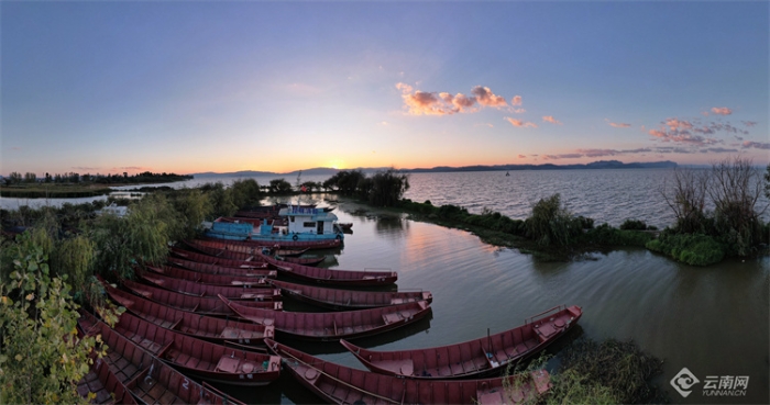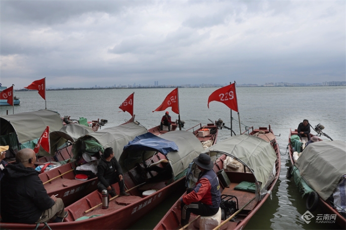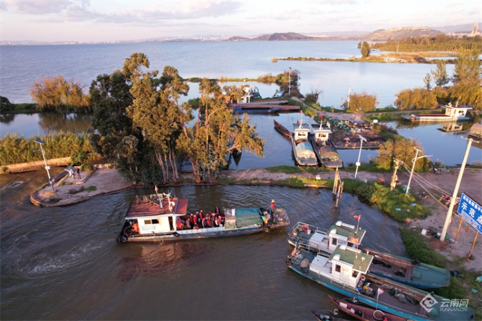 深秋的昆明溫暖如春,海埂公園游人如織,海鷗飛舞的滇池點(diǎn)綴著(zhù)幾十只大大小小的船只與湖面相映成趣。船還是曾經(jīng)的漁船,如今,只是在滇池上打撈枯死的水生植物及水面漂浮物等垃圾。在滇池邊長(cháng)大的徐春是船隊中的一員,他的工作日常就是劃著(zhù)小漁船配合同事在滇池沿岸打撈垃圾做好湖面保潔工作。徐春和船上兩位隊員是同事也是同村,他們都是滇池南岸的晉寧區晉城街道沙堤村委會(huì )興隆村人。