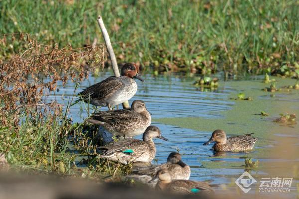 在晉寧的南滇池國家濕地公園每年越冬的各類(lèi)鳥(niǎo)類(lèi)中,不少是國家珍稀鳥(niǎo)類(lèi),包括青頭潛鴨、彩鹮、草鷺、水雉、白額雁短嘴豆雁國家級保護動(dòng)物,以及一些消失多年的白眉鴨、灰雁、普通秧雞等,特別是今年在南滇池國家濕地公園又記錄到難得一見(jiàn)的鳥(niǎo)類(lèi)黑尾塍鷸、紅頸瓣蹼鷸、黑枕黃鸝、黑頸??。