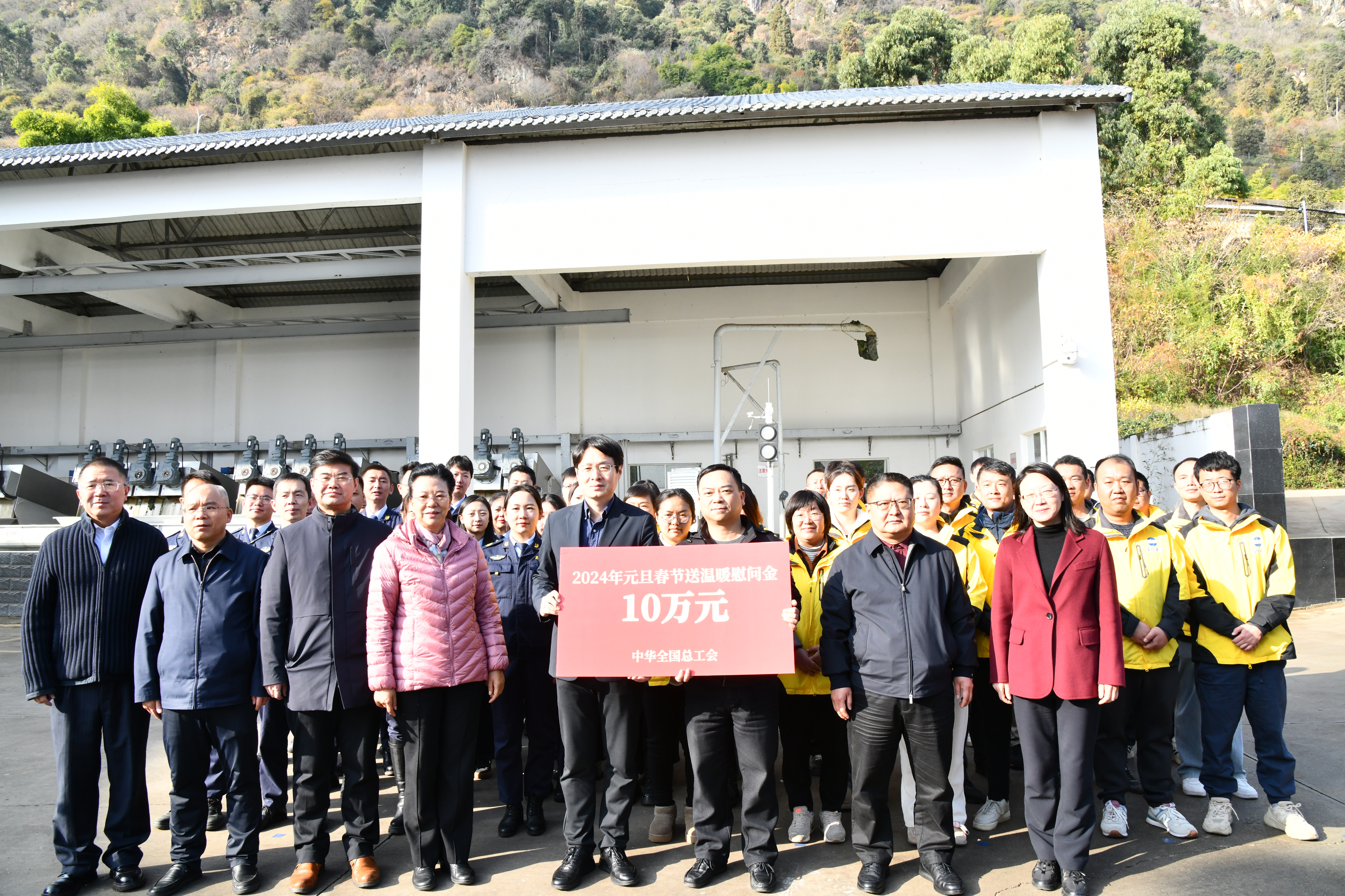 2024年1月19日上午,中華全國總工會(huì )書(shū)記處書(shū)記潘健率送溫暖慰問(wèn)團來(lái)到龍門(mén)藻水分離站,慰問(wèn)滇池保護治理一線(xiàn)職工,送來(lái)黨和政府及工會(huì )組織的殷切關(guān)懷和節日祝福。云南省總工會(huì )主席王樹(shù)芬、昆明市總工會(huì )主席李開(kāi)德陪同參加。